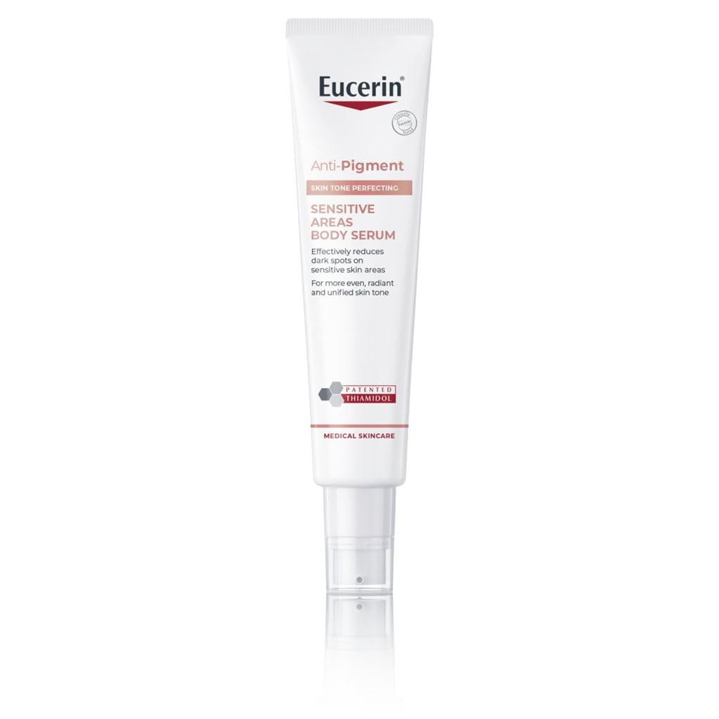 Eucerin Anti-Pigment Skin Tone Perfecting Sensitive Areas Body Serum combines powerful active ingredients that work in different ways to reduce hyperpigmentation to create a more even and unified skin tone whilst soothing sensitive skin.