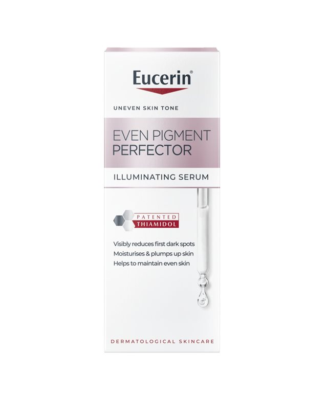 Eucerin Even Pigment Perfector Skin Perfecting Serum does not protect skin from the sun. As the sun’s rays are a key contributor to hyperpigmentation it’s important to wear an appropriate sun protection product, even on cloudy days. We recommend that, if you apply Eucerin Even Pigment Perfector Skin Perfecting Serum in the morning, you follow it with Eucerin Even Pigment Perfector Day SPF 30 to help fade existing acne marks and protect skin from the sun, thereby reducing further sun-induced pigmentation issues. For intense sun exposure choose a higher protection factor from the Eucerin Sun Protection range.