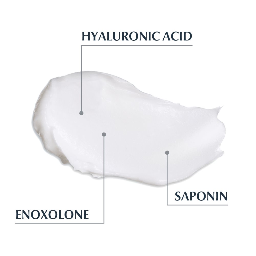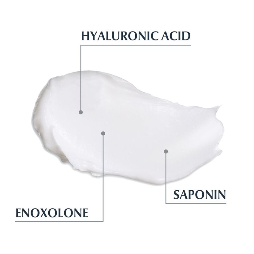 Eucerin Hyaluron-Filler Day Cream dry skin contains a unique combination of short- and long-chained Hyaluronic acid to penetrate and plump up wrinkles from within plus bio-active Glycine-saponin to further stimulate skin’s own natural production of Hyaluronic acid, improving moisture retention levels and smoothing wrinkles from within.