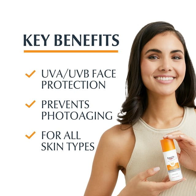 Eucerin Sun Face Photoaging Control Fluid SPF 50+ is unperfumed and has a pleasant light texture that absorbs quickly. Clinical and dermatological studies prove very good skin tolerability on sensitive skin.