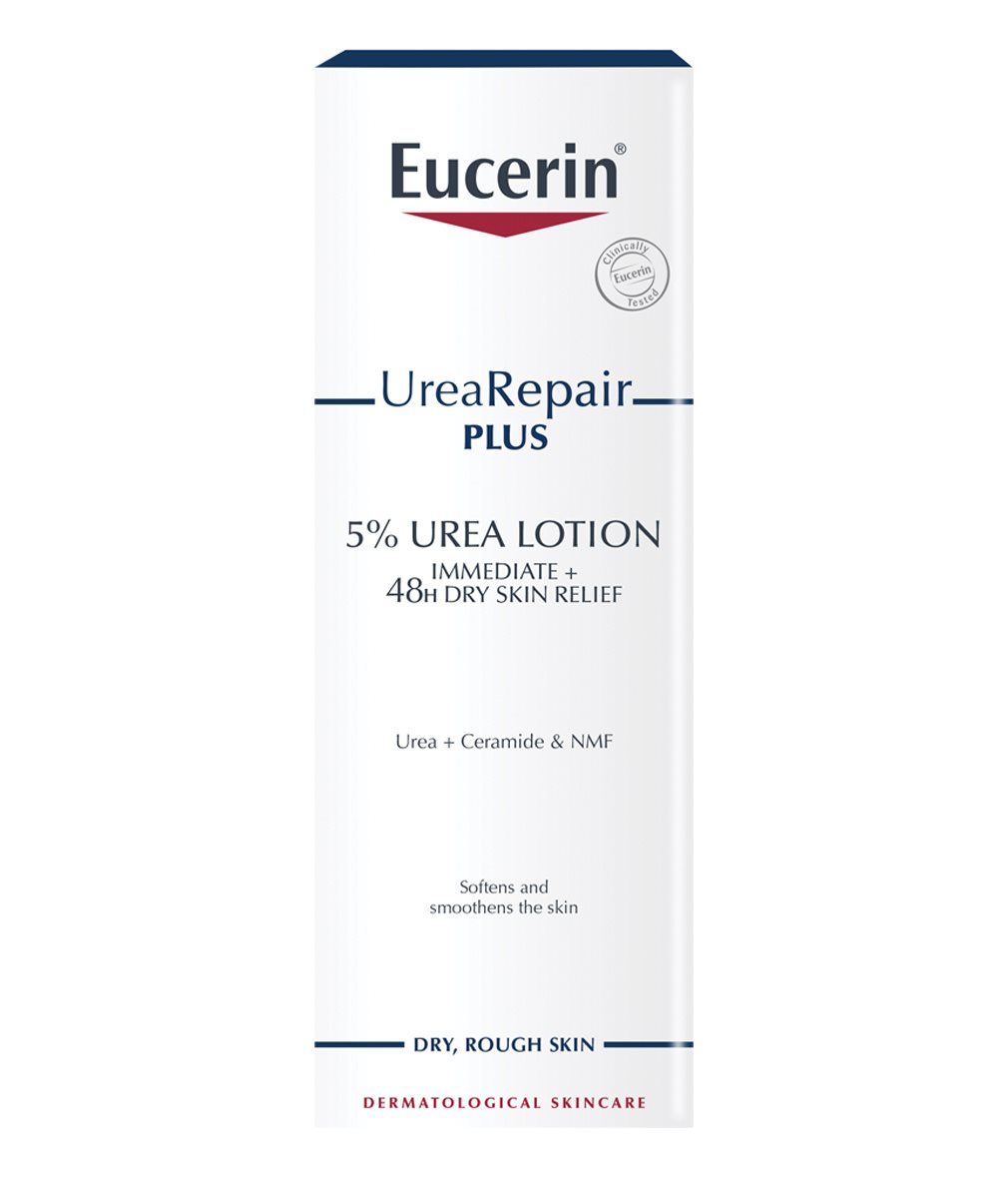 When the skin on our bodies has a stable barrier function, it protects us from external irritants and is able to maintain its optimal level of hydration. But when that barrier is impaired, skin can lose moisture and look and feel dry as a result. Eucerin UreaRepair PLUS 5% Urea Lotion gives dry, rough and bumpy body skin the daily care it needs. It contains a unique combination of ingredients – Urea, Ceramide and other Natural Moisturizing Factors (NMFs) – which bind moisture in and repair skin´s natural protective barrier to prevent further moisture loss. The formula has been clinically and dermatologically proven to deliver immediate relief and intense, long-lasting moisturization, delaying dryness and roughness for up to 48 hours. Skin is intensely moisturized and looks and feels smooth and soft. The dry skin lotion is suitable for those with mature skin and/or Diabetes. It can also be used as adjunctive care.